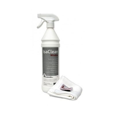 Rinse windows with clean water to remove dirt. Next, spray IsaClean Window directly onto the window and wipe with the supplied microfibre cloth.