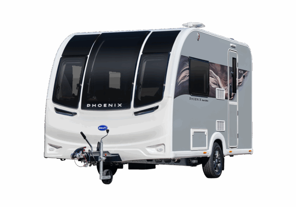 The Bailey Phoenix Black Edition 420 is a sleek and lightweight 2-berth single axle caravan, designed for couples seeking stylish comfort and versatile living on the road.