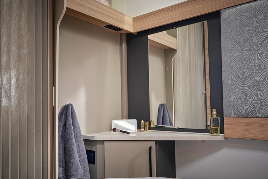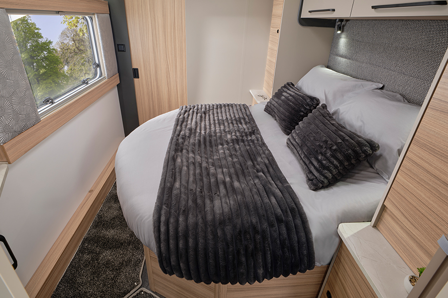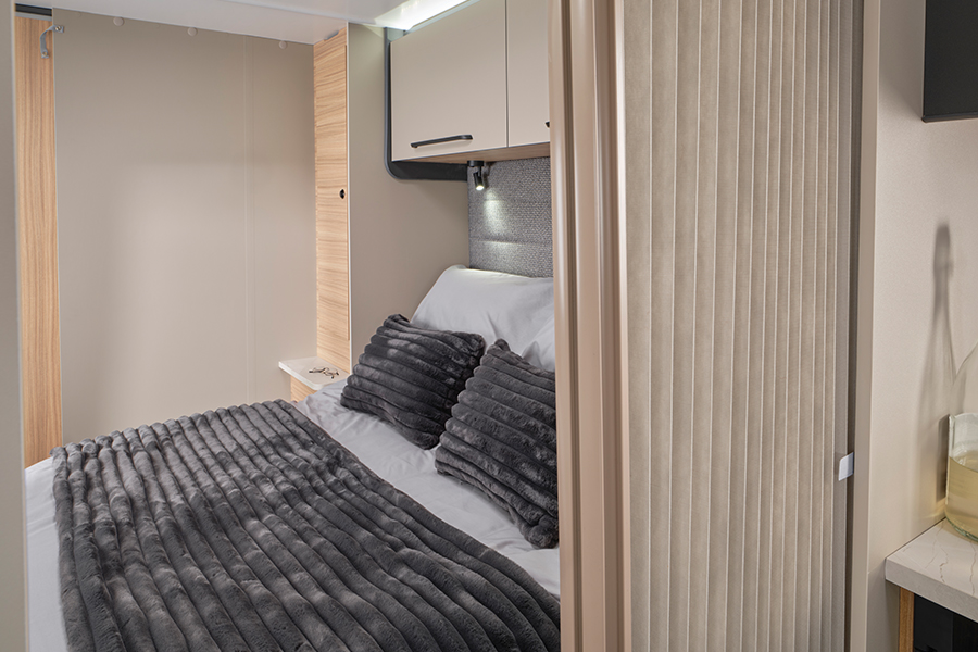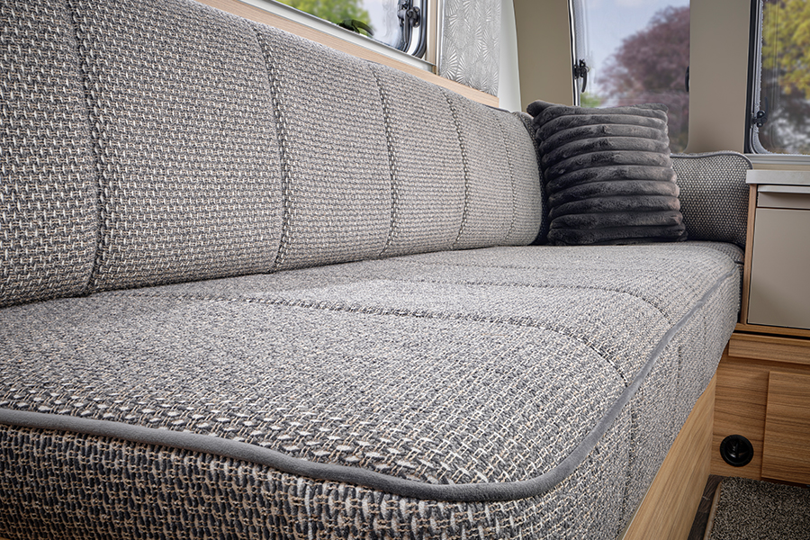 - Front lounge converts to twin singles or a double bed, available in two fabric options
