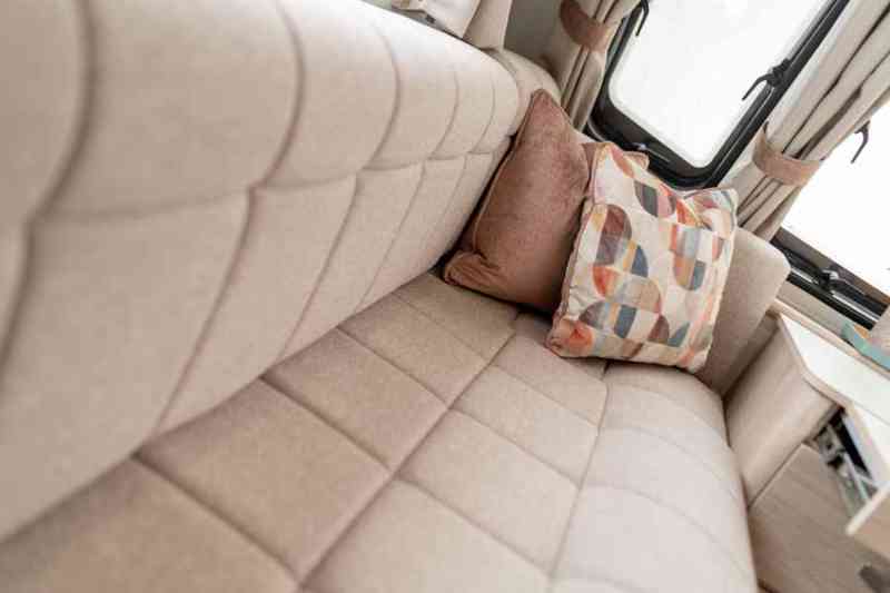The Whirlwind 840 is a family focused layout based on the popular 8ft wide 6 berth design. It features a fixed french bed to the rear n/s with spacious washroom to the rear o/s corner , well appointed kitchen opposite a u-shaped dinette and long front parallel lounge seating.
