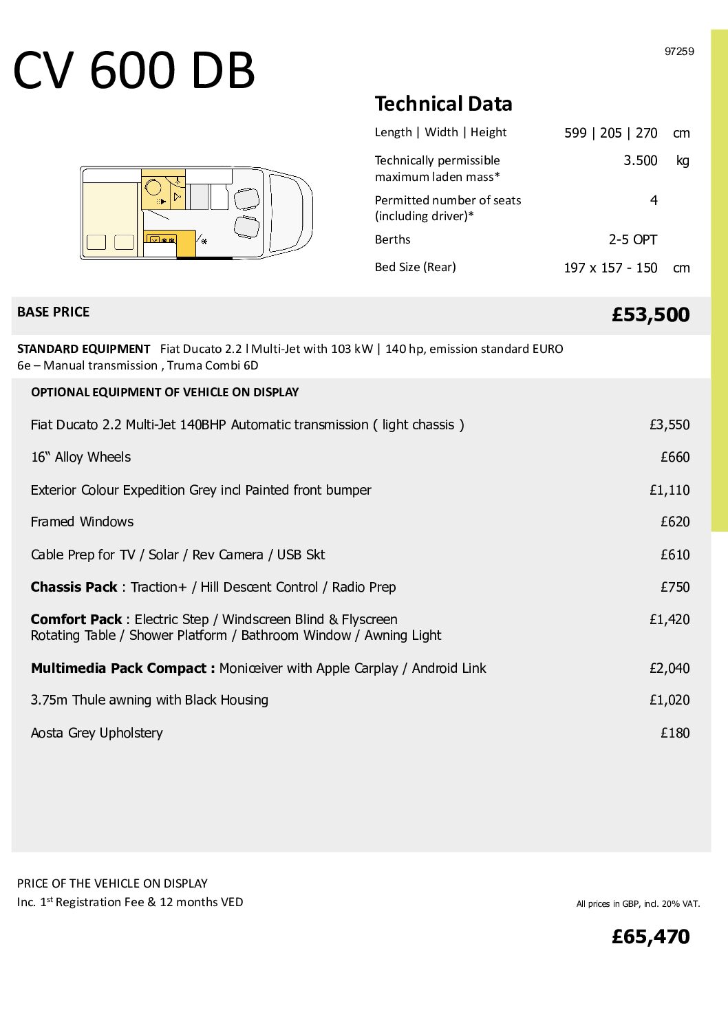 The Etrusco CV 600 DB is the perfect motorhome for those seeking a balance of compact size, comfort, and convenience. Whether you’re embarking on a weekend getaway or a longer road trip, its innovative design and excellent performance offer the ideal solution for your travel needs.