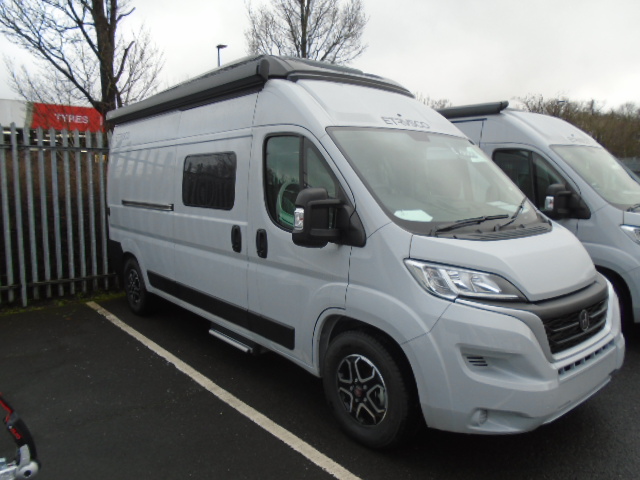 The Etrusco CV 600 DB is a dynamic and compact motorhome designed for those who value both comfort and efficiency on the road. Built on the Fiat Ducato chassis, this 5.99-meter motorhome offers a powerful driving experience with a smooth 2.2L engine, ensuring easy handling and performance across all terrains. Inside, the clever layout maximizes space with a cozy double bed, fully equipped kitchen, and a practical bathroom, making it perfect for couples or small families who seek both adventure and relaxation.